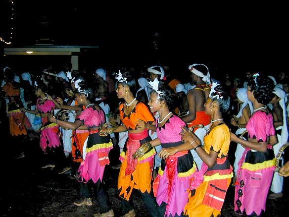 Ein nächtliches buddhistisches Tempelfest bei Matara